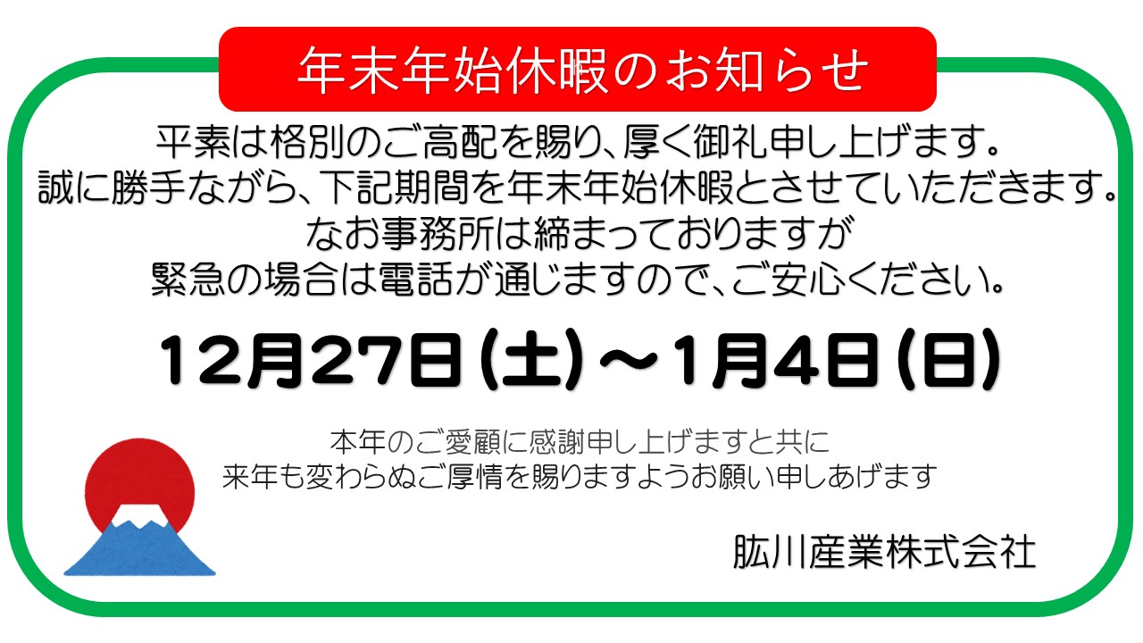 年末年始休暇のお知らせ